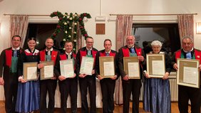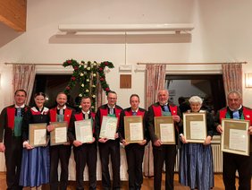 Höhepunkt des Abends waren die Ehrungen langjähriger Mitglieder: Für 15 Jahre aktive Tätigkeit wurden Elisabeth Delueg und Lex Martin ausgezeichnet. Hannes Gögele und Michael Pichler erhielten die Auszeichnung für 25 Jahre, Andreas Terragnolo und Thomas Pfeifer wurden für 40 Jahre Mitgliedschaft geehrt.